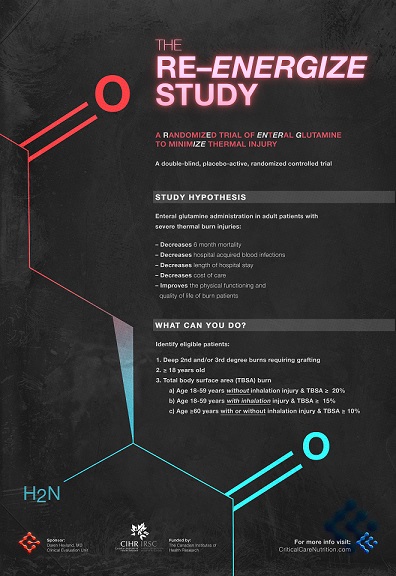 The Clinical Evaluation Research Unit has received a grant worth $5.7 million over 5 years for the international, 60 Acute Care Unit (ICU/Burn Unit) RE-ENERGIZE RCT. The study will investigate the use of glutamine in 2700 patients with severe burn injuries and will evaluate clinical outcomes including mortality and morbidity as well as health related quality of life. Click here to read a local article regarding Dr. Heyland and CERU's acheivement. ClinicalTrials.gov (NCT00985205)